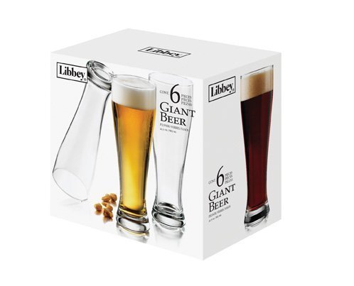 Set contains six 22-1/2-ounce giant pilsner glasses and are great for enjoying any beverage you choose. Dishwasher safe. Made in USA.